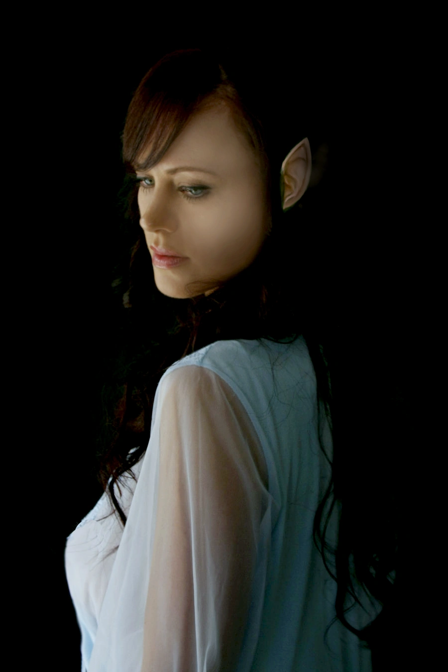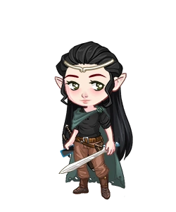 Eledhwen has the dark hair and grey eyes of her fellow Noldorin Elves. She towers over her partner at 6'2".