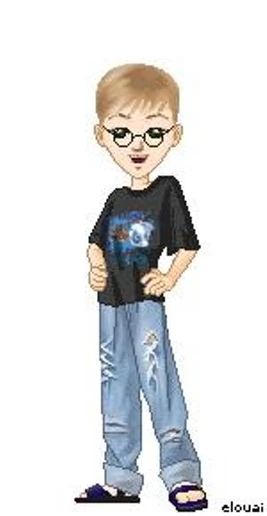 Kyle is small and wiry with pale skin, slightly shaggy light brown hair, blue eyes, glasses, and a slightly upturned nose. His typical clothing consists of sandals, a black t-shirt, and blue jeans with holes in the knees. The holes generally appear shortly after he puts on a new pair of jeans.