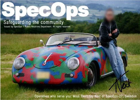 The Thursday Next book series is a metafiction-detective story set in an alternate universe of Earth-One, where the Crimean War has gone on for far too long, literature forgery and cheese smuggling are crimes, time travel is an innate skill for some individuals, and cloned dodos are common housepets. It is also possible to enter into the text of a book, and into a whole fictional space, in fact. The series is named for the titular character created by Jasper Fforde. She first appeared in The Eyre Affair where she worked for SpecialOps 27, the Literary Detectives, in the Swindon branch.